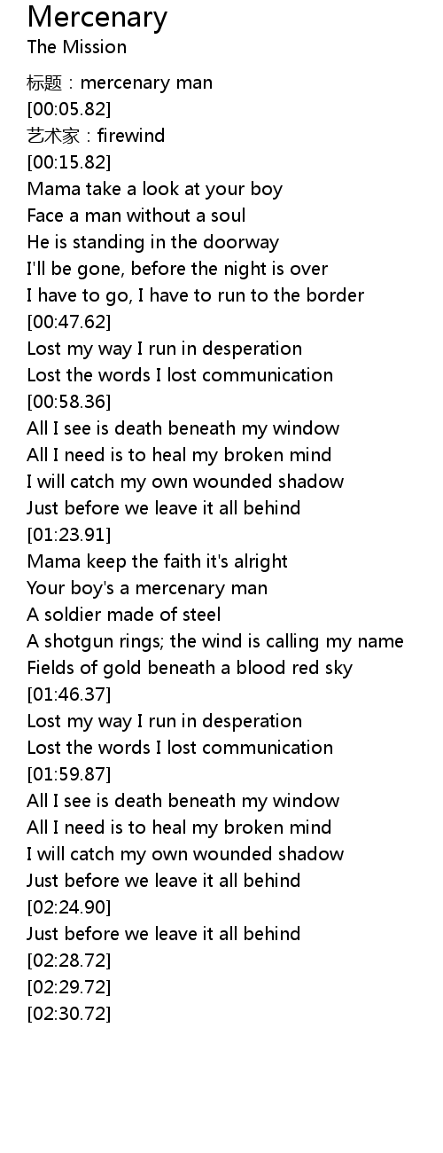 | [01:42.55] | Fields of gold beneath a blood red sky |