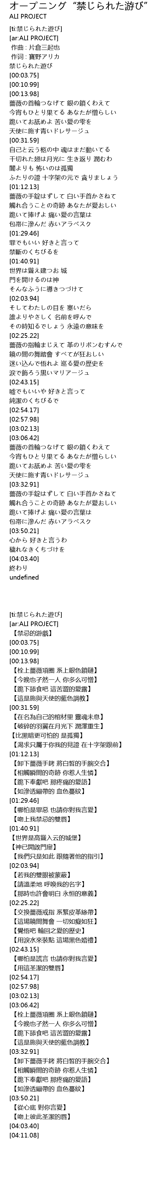 | [03:33.29] | 薔薇の手錠はずして 白い手首かさねて |