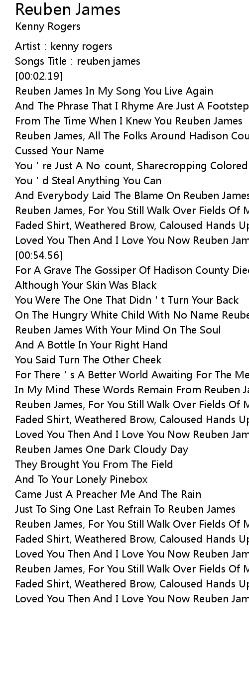 | [00:35.04] | And Everybody Laid The Blame On Reuben James |