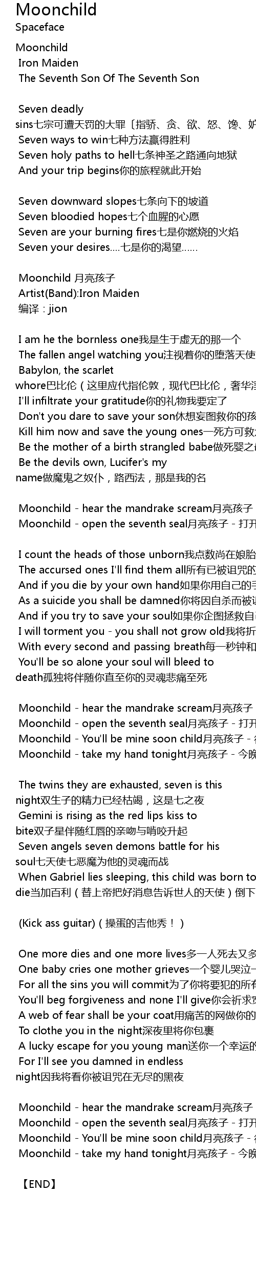 | Moonchild open the seventh seal yuè liàng hái zi dǎ kāi dì qī fēng yìn | |