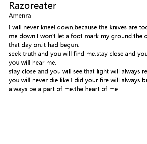 | I will never kneel down.because the knives are too sharp.I won't let a hand hold me down.I won't let a foot mark my ground.the day.where pain became flesh.since that day on.it had begun. | |