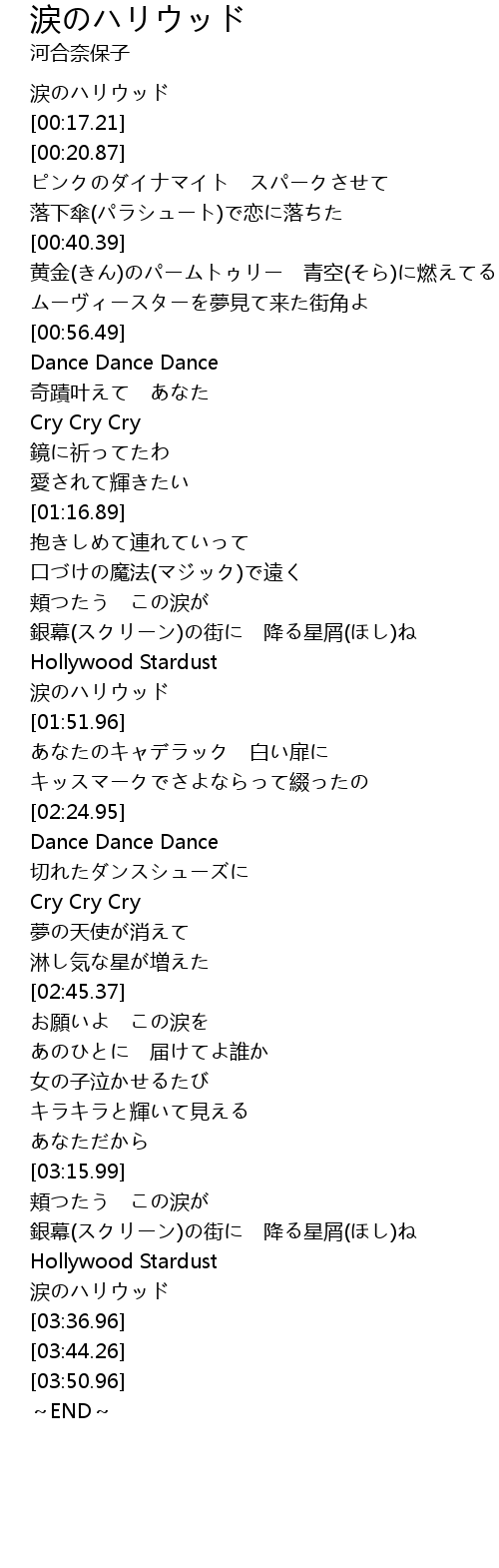 | [03:34.00] | 涙のハリウッド |