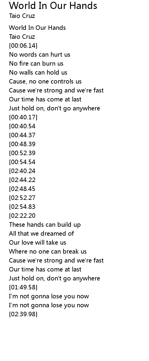 | [02:01.37][00:52.39] | We got the world in our hands |