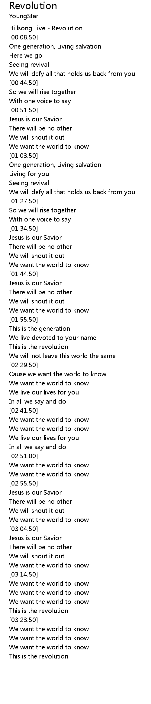 Cause we want the world to know |