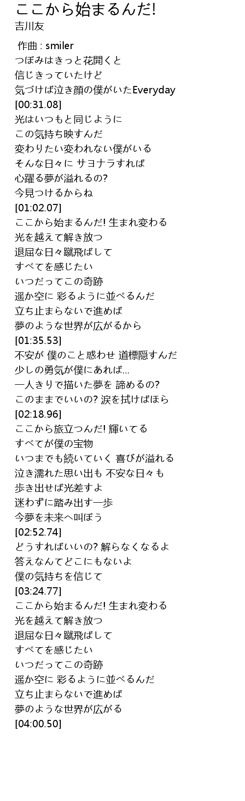 | [03:25.34] | ここから始まるんだ! 生まれ変わる |