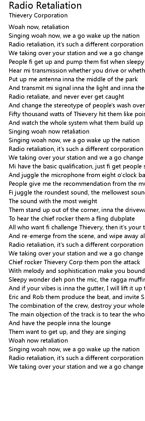 Radio retaliation, it's such a different corporation |