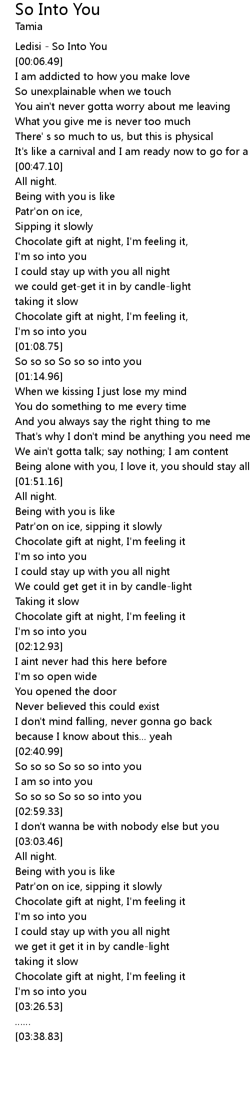 | [01:08.89] | So so so So so so into you |