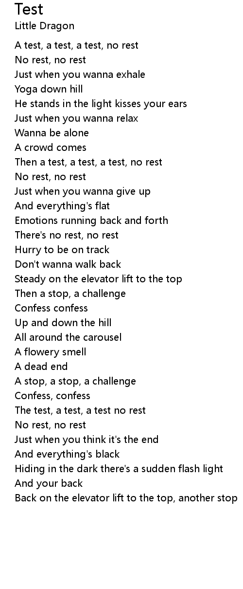 Then a test, a test, a test, no rest |