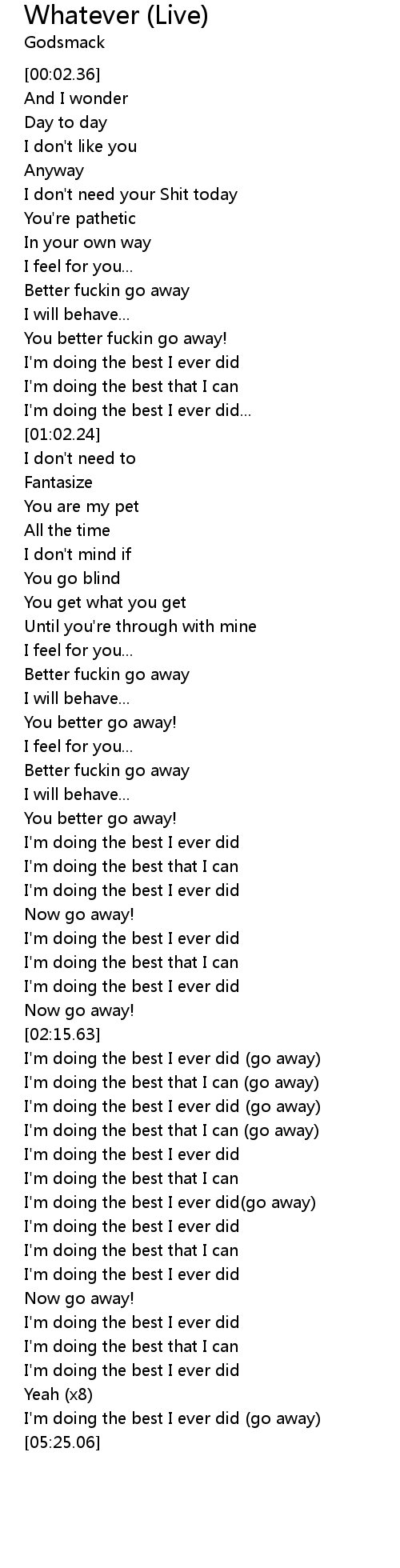 | [05:16.59] | I'm doing the best I ever did (go away) |