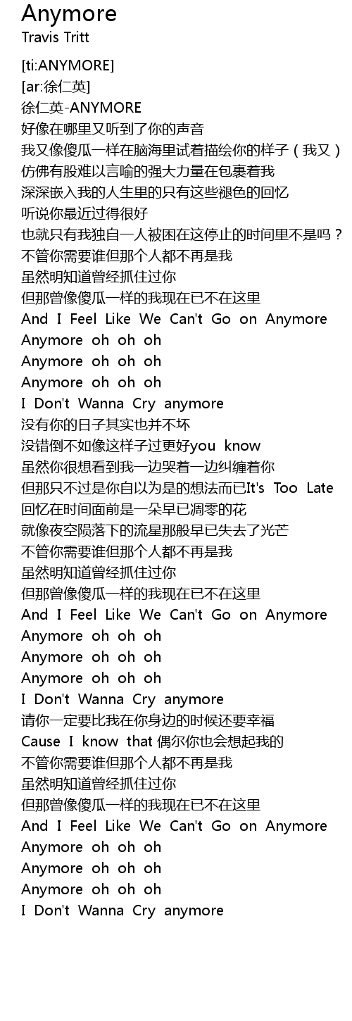 | [02:48.614] | I Don't Wanna Cry anymore |
