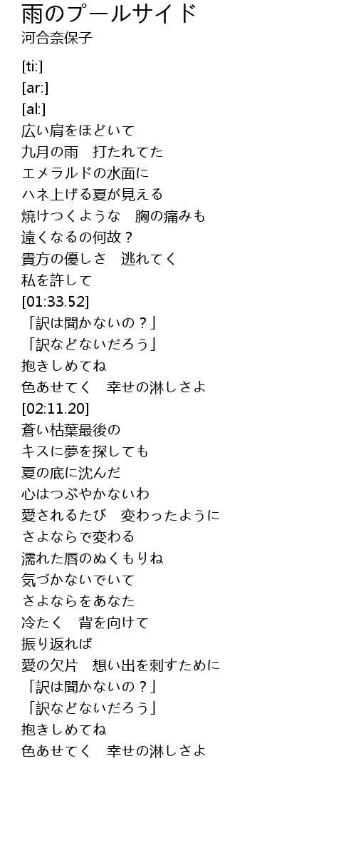 | [02:53.13] | 濡れた唇のぬくもりね |