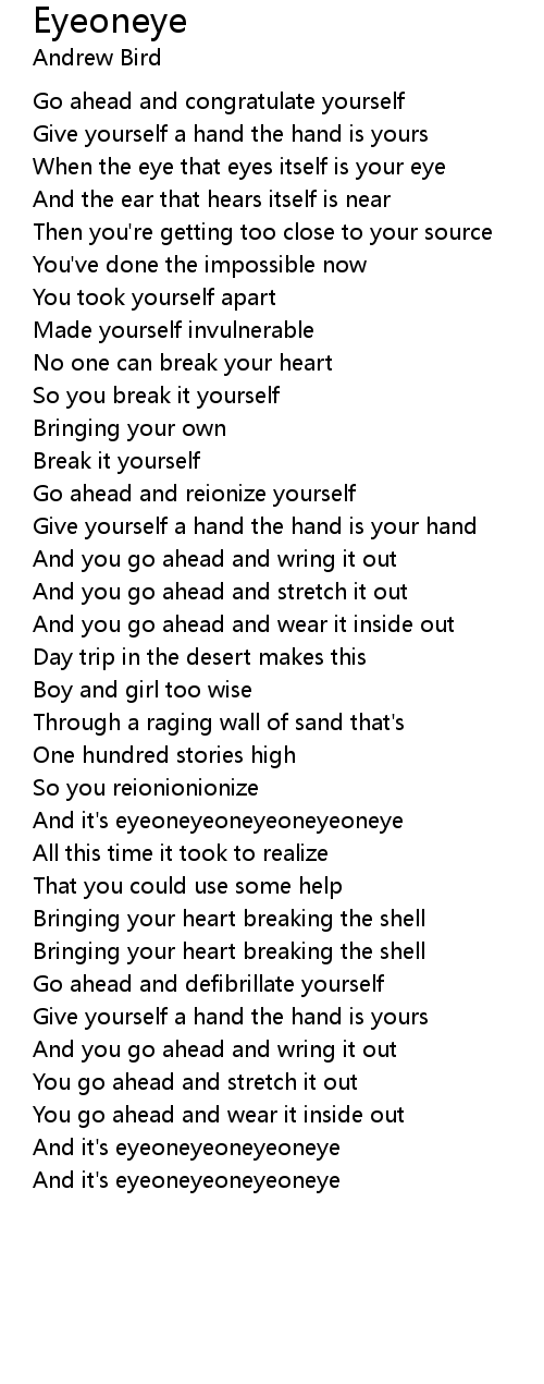 And it's eyeoneyeoneyeoneyeoneye |