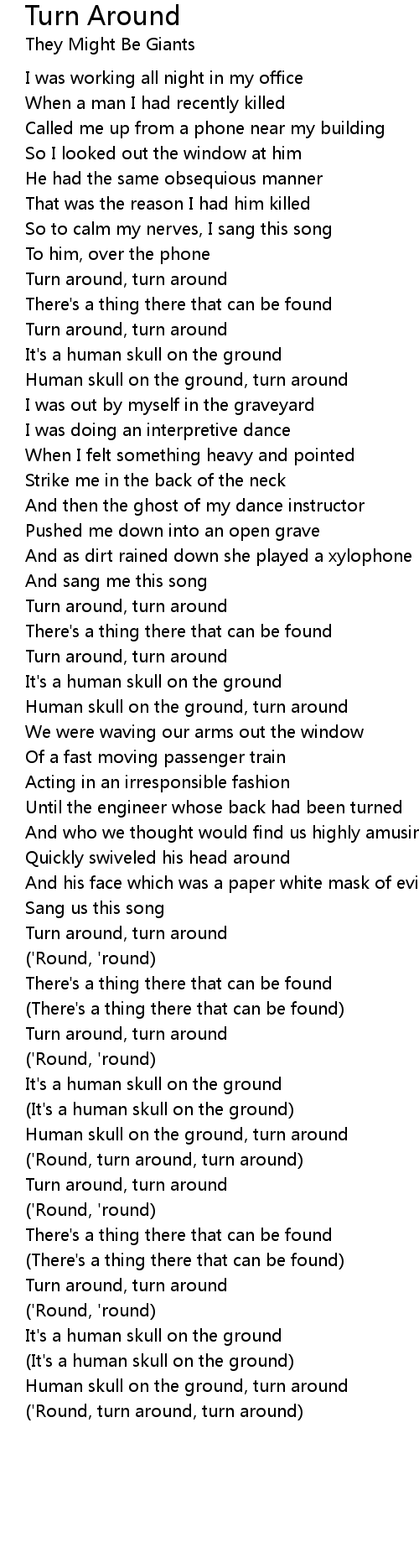 Turn around, turn around |