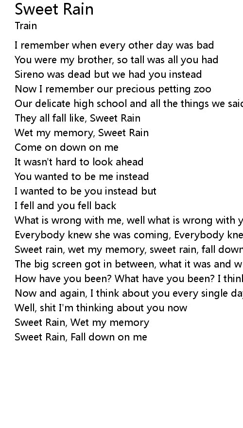 Sweet rain, wet my memory, sweet rain, fall down on me |
