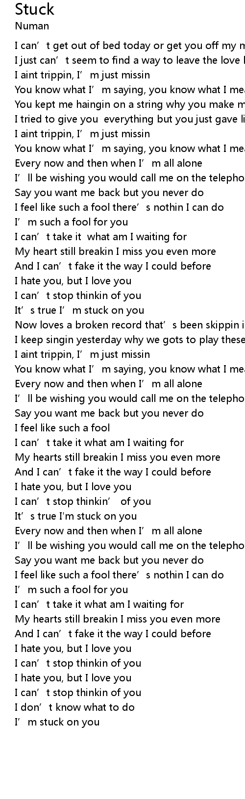 | [00:01.09] | I can’t get out of bed today or get you off my mind |