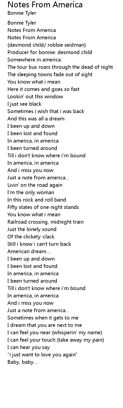 Notes From America 歌词