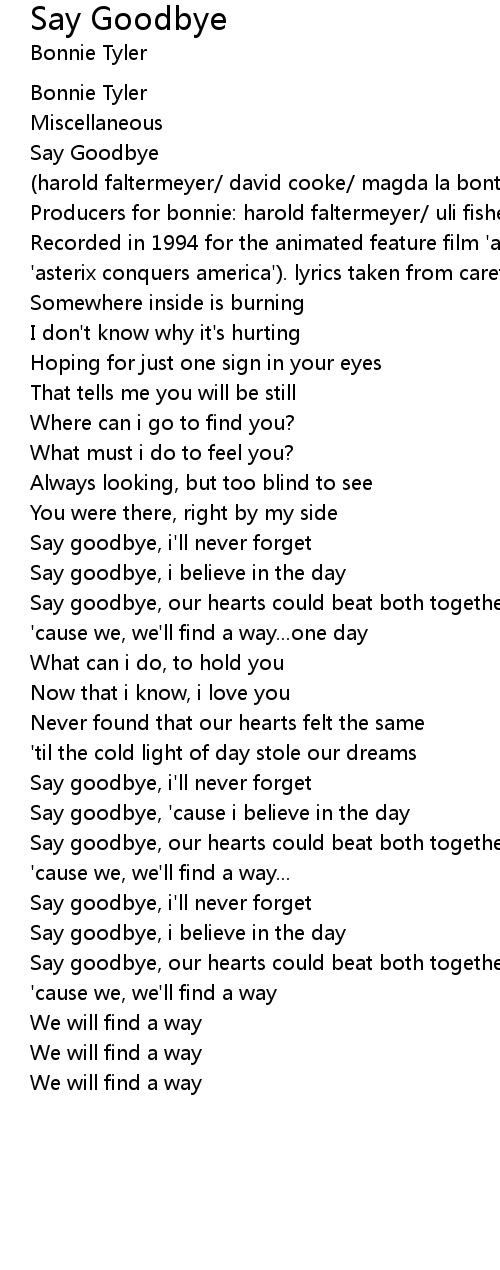 Say goodbye, i'll never forget |