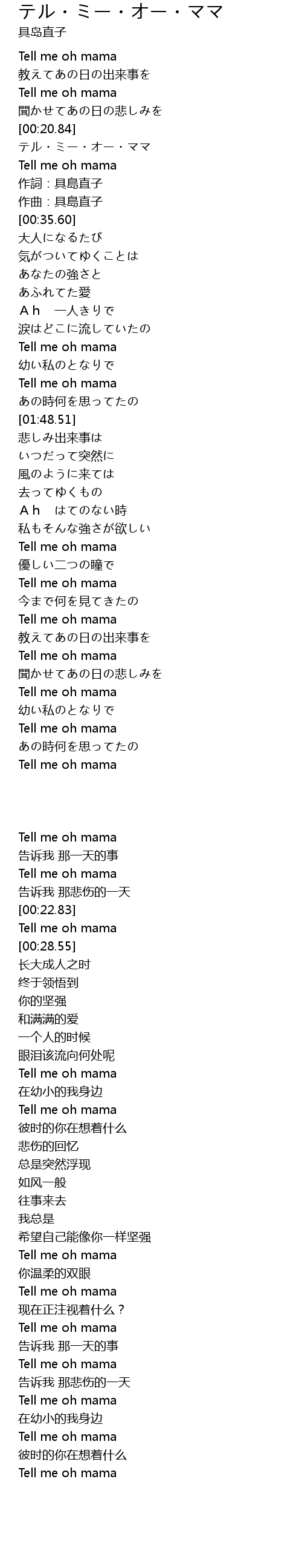 Tell me oh mama |