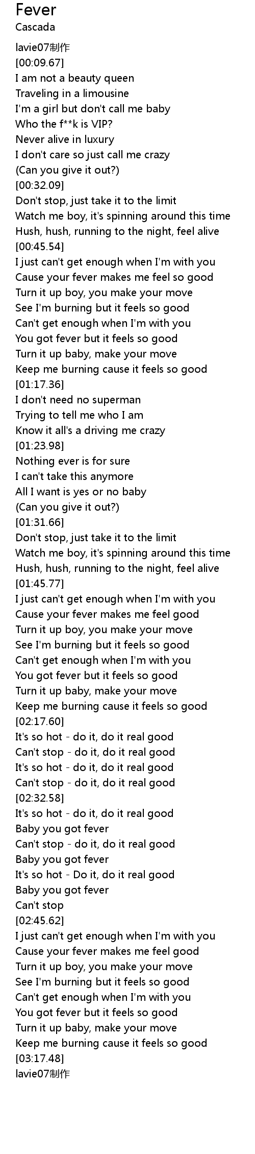 | [02:50.60] | Cause your fever makes me feel good |