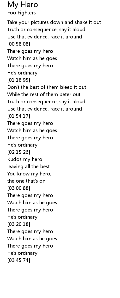 You know my hero, |