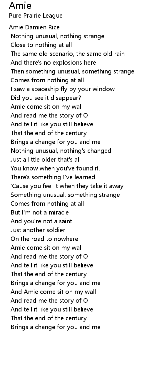 And Amie come sit on my wall |