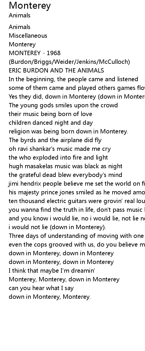 Monterey, Monterey, down in Monterey |