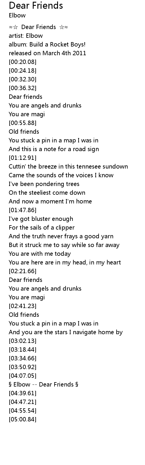 | [04:23.26] | Elbow Dear Friends |