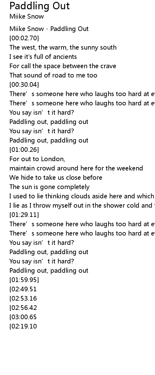 | [03:08.13][02:53.16][02:04.43] | Paddling out, paddling out |