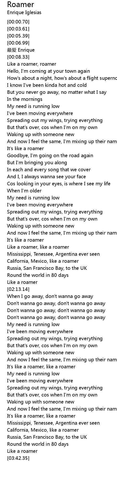 | [02:59.20] | It' s like a roamer, like a roamer |
