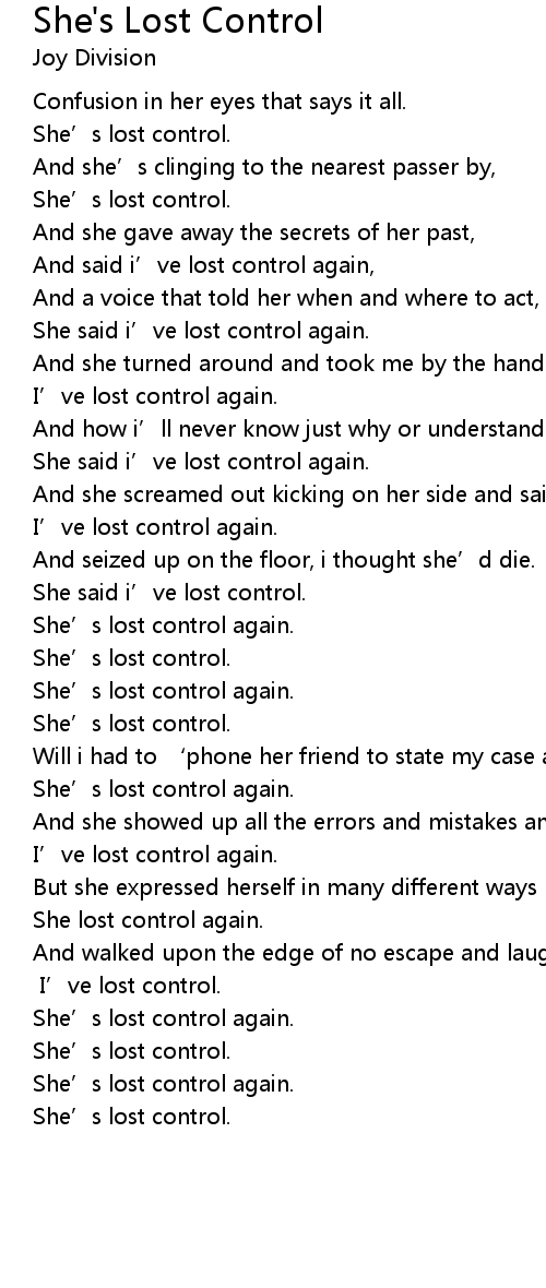 | 歌曲 | She's Lost Control |