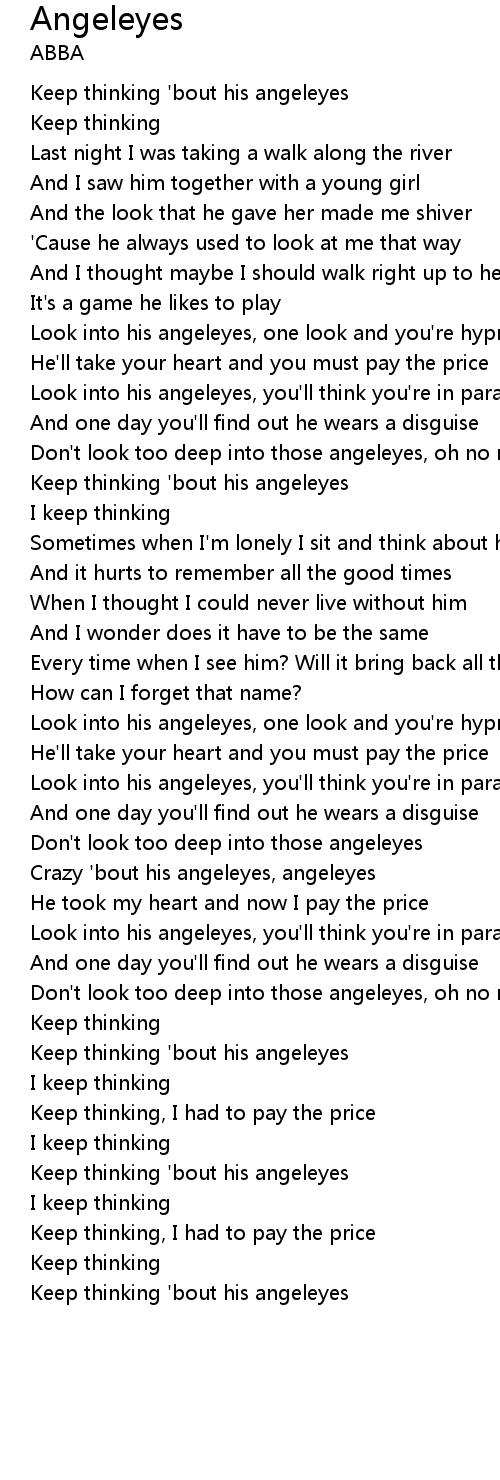 Don't look too deep into those angeleyes, oh no no no no |
