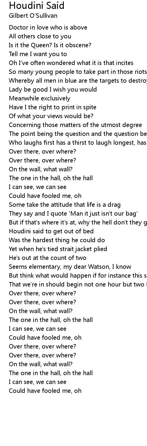 Houdini said to get out of bed |