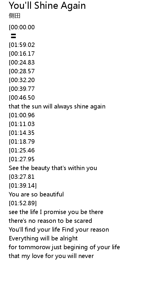 | [02:57.68][01:14.35] | You' ll shine again |
