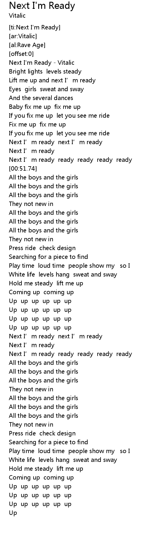 | [00:47.35] | Next I' m ready ready ready ready ready |