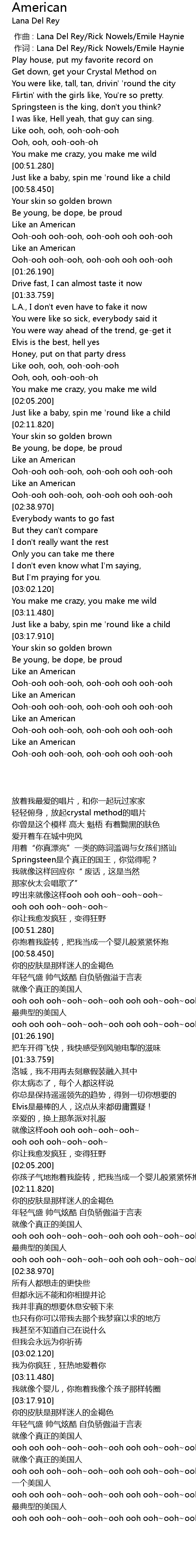 | [03:32.000] | 就像个真正的美国人 |