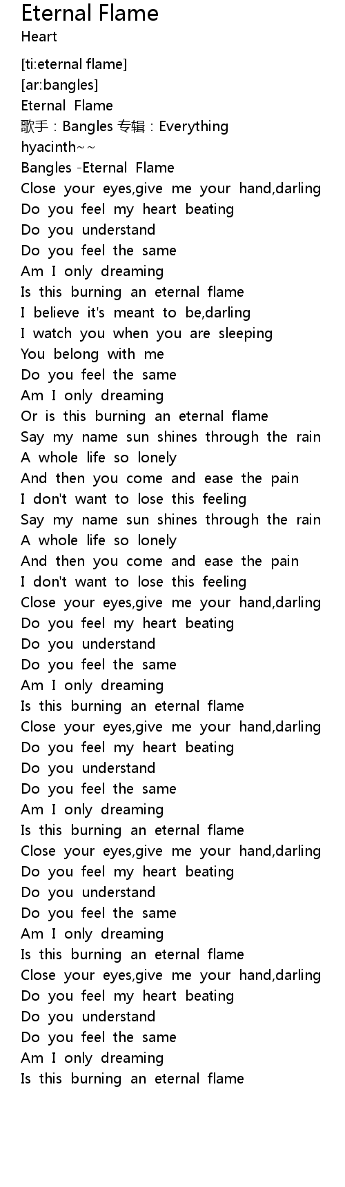 | [00:04.854] | Bangles Eternal Flame |