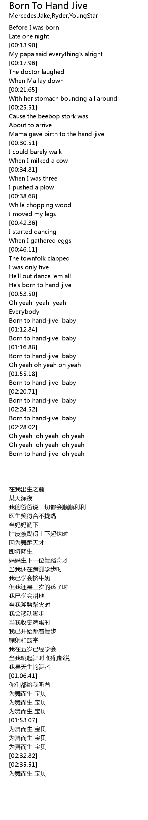 Born to hand-jive oh yeah |