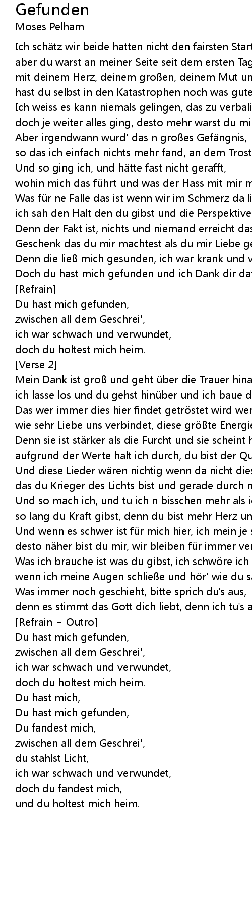 | Doch du hast mich gefunden und ich Dank dir dafür! | |