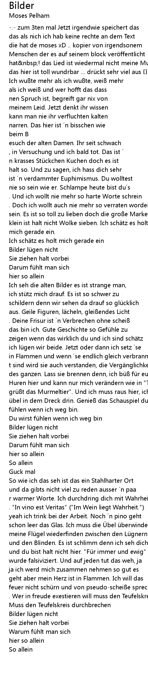 | Ich seh die alten Bilder es ist strange man, | |