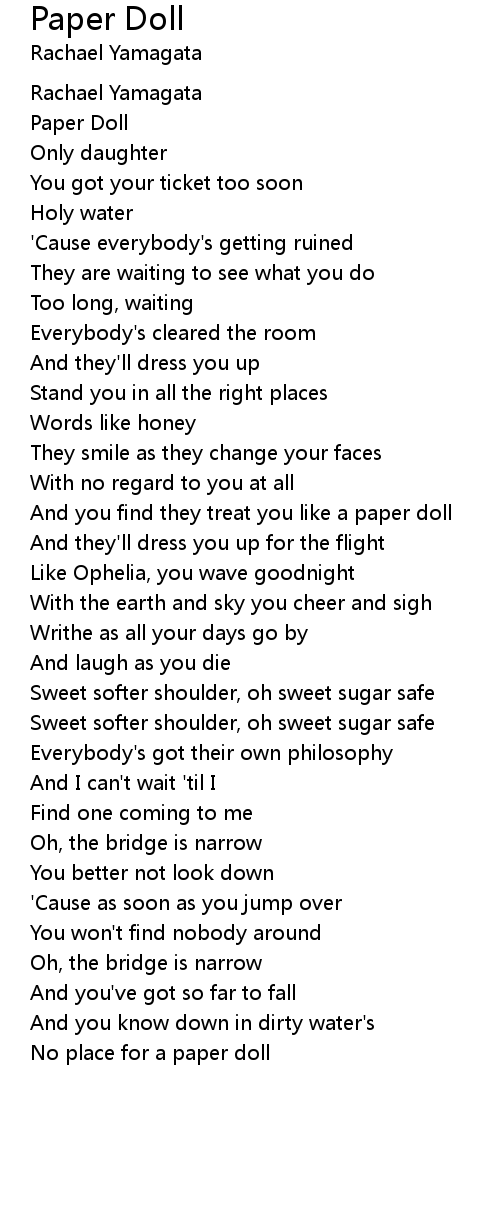 And you find they treat you like a paper doll |