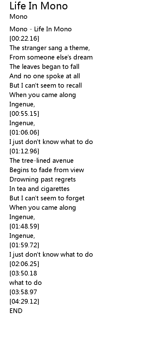 [00:00.00] Mono - Life In Mono