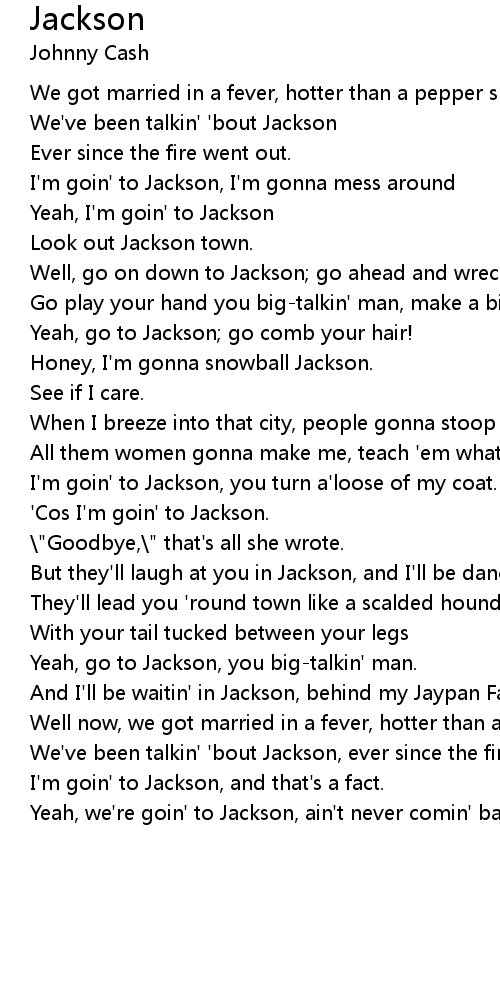 'Cos I'm goin' to Jackson. |