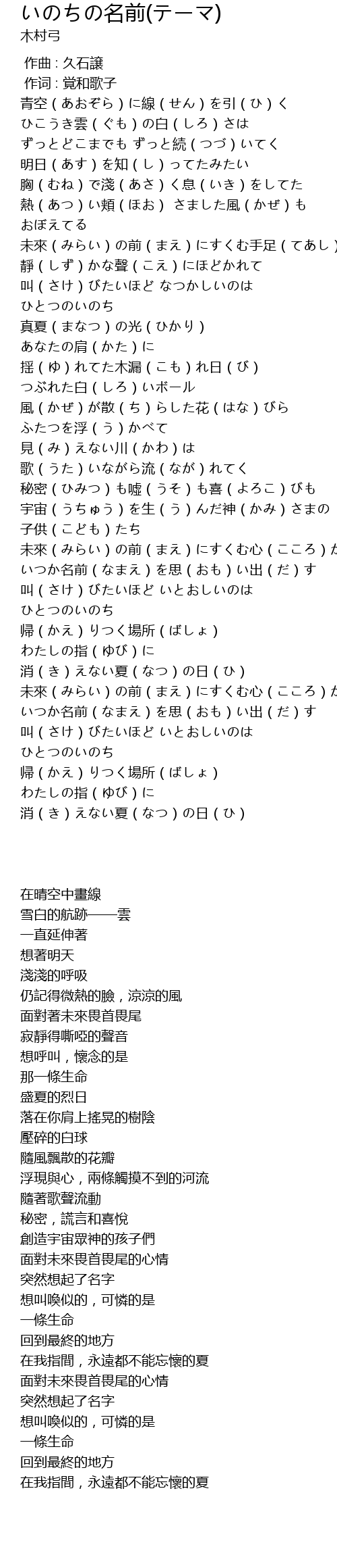 | [02:10.289] | いつか名前(なまえ)を思(おも)い出(だ)す |