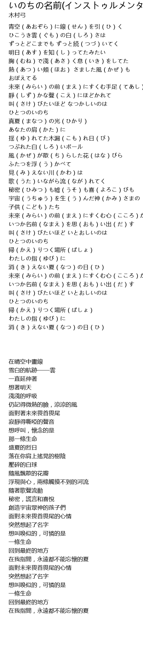 | [03:16.300] | わたしの指(ゆび)に 消(き)えない夏(なつ)の日(ひ) |