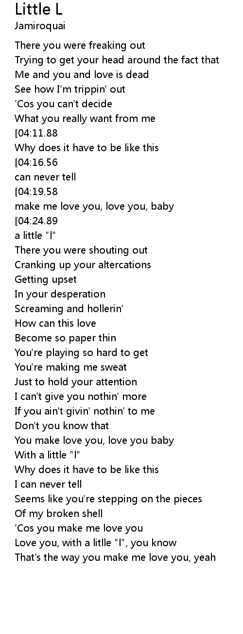 [04:35.19][04:19.58][04:03.91][03:48.26][03:32.56][03:16.88][03:01.18][01:11.04] you make me love you, love you, baby