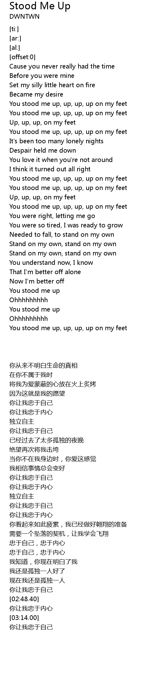You stood me up, up, up, up on my feet |