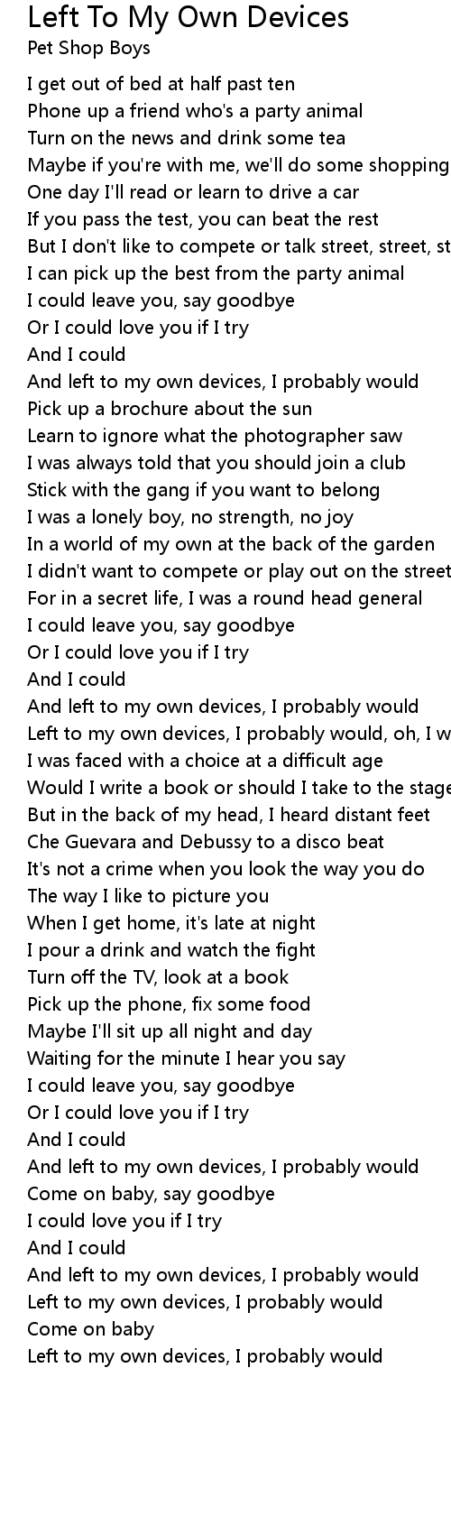 Left to my own devices, I probably would, oh, I would |