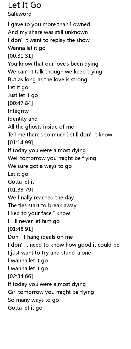 | [00:30.12] | Wanna let it go |