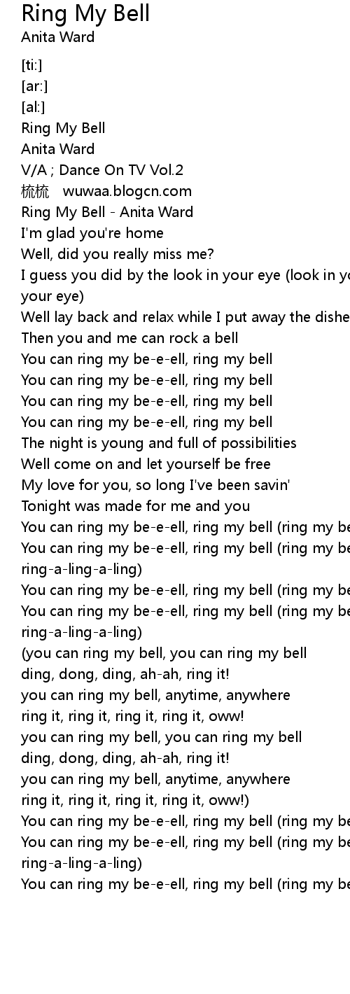| [00:00.00] | Ring My Bell - Anita Ward |