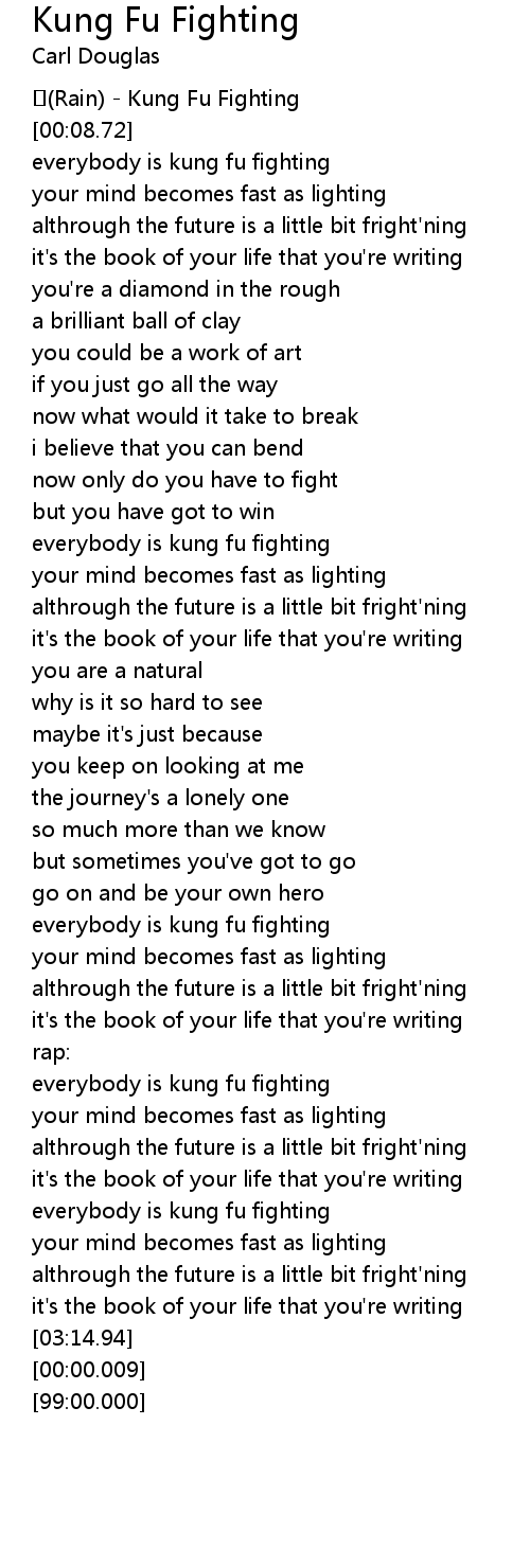 | [00:50.33] | everybody is kung fu fighting |